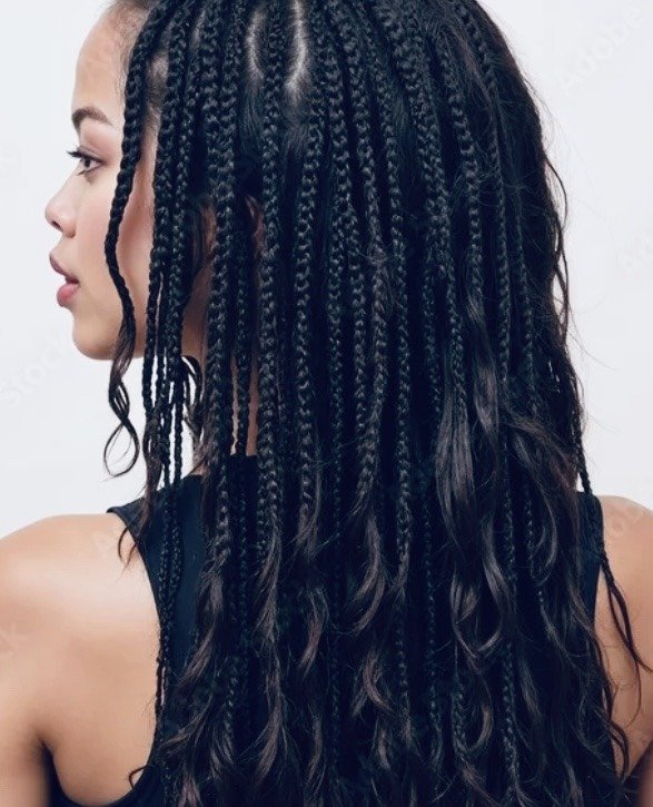 Braids featuring loose, curly ends for a soft and stylish finish.